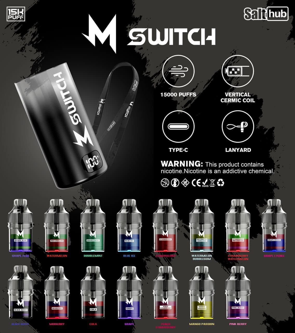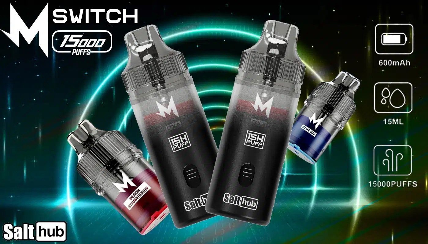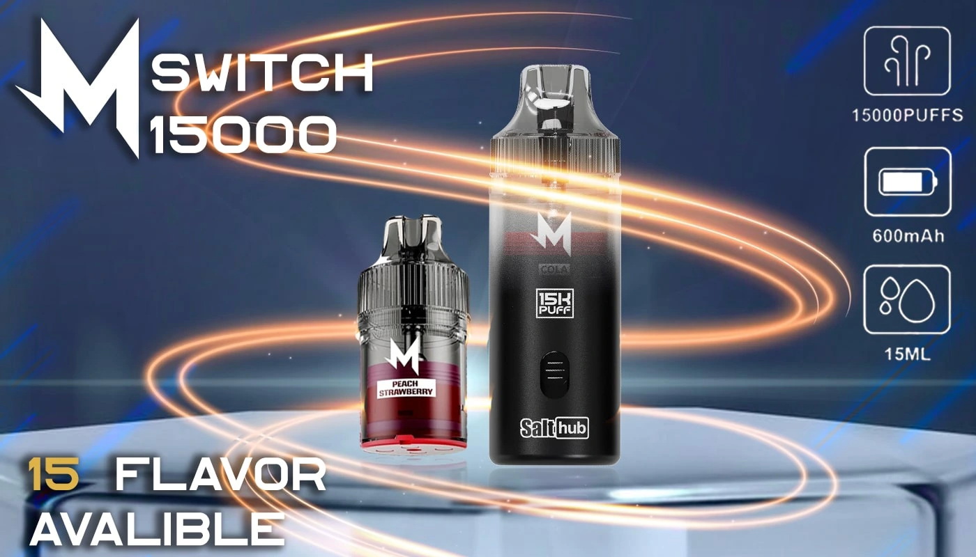 M SWITCH 15000 Puffs จาก SALTHUB ของแท้ เป็นนวัตกรรมใหม่ในวงการบุหรี่ไฟฟ้า พอตใช้แล้วทิ้งที่ถูกออกแบบมาเพื่อความสะดวกสบายและการใช้งานที่ยาวนาน ด้วยจำนวนการสูบที่มากถึง 15000 คำ และคอยล์แบบ Vertical Ceramic Coil คอลย์เซรามิก ไหม้ยาก ทนทาน ควันเยอะ กลิ่นโคตรดี และชัดมาก หัวรุ่นนี้ข้างในเป็นน้ำยาซอลนิคใสๆมาทั้งหมด ไม่ได้เป็นสำลีไฟเบอร์แบบรุ่นเก่า จึงช่วยเพิ่มรสชาติให้เข้มข้นและหอมอร่อยตั้งแต่คำแรก ตัวพอตนี้เหมาะสำหรับทั้งมือใหม่และนักสูบมือโปรที่มองหาประสบการณ์ใหม่ที่ยอดเยี่ยมกว่าเดิม